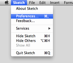 続いて、Sketchの環境設定でプラグインの有効化が必要ですので、[Sketch]メニューから、[Preferences]を選択します。
