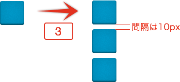 選択しているオブジェクトを、入力した値の数だけ垂直方向に複製します。オブジェクト同士の間隔は10pxになるようです。