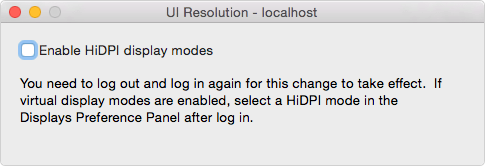 表示されたウィンドウの「Enable HiDPI display modes」にチェックを入れます。