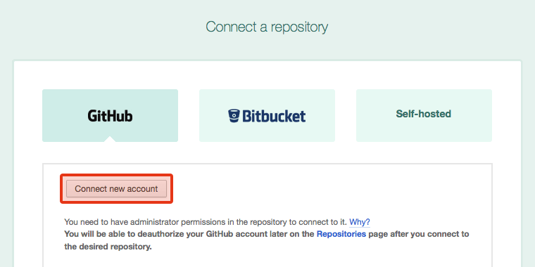 GitHubを選択し[Connect new account]ボタンをクリックします。