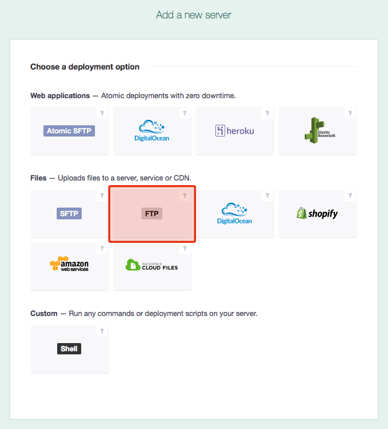 今回はFTPSを用いてレンタルサーバーアップロードしますので、Filesの「FTP」を選択します。