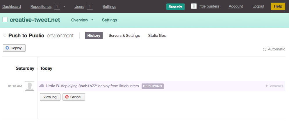 これでローカルからプッシュするだけで、あとはCIサービスがビルドからレンタルサーバーへのデプロイまでをやってくれるようになりました。