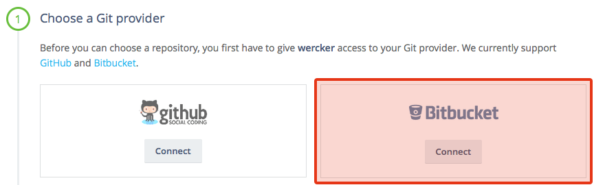画面が切り替わり、Choose a Git providerで、Bitbucketを選択します。