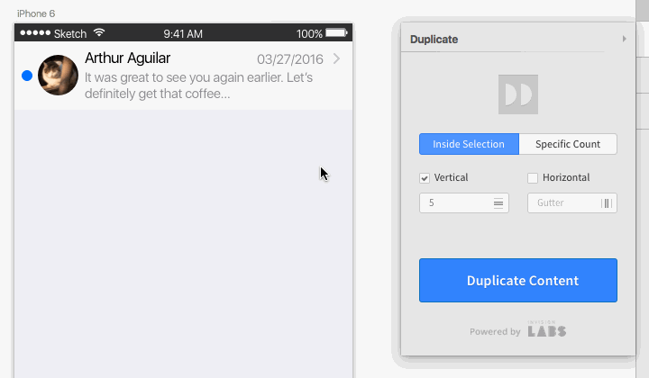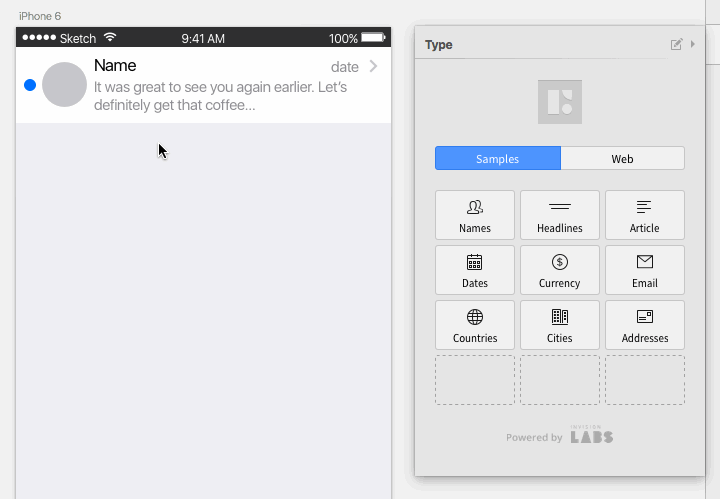 そして何より重要なのは、Duplicateを使って複製すると、内包するレイヤー内でTypeやPhotoを使ってダミーを挿入している場合、複製された文字や写真がランダムに置き換わるということです。今までだと複製後にContent Generatorなどで都度テキストを入れ替えていましたが、それが不要になります(この機能もSketch版のみ)。