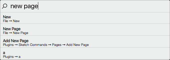 Sketch Runnerと異なり、基本的にはメニュー項目しか実行できません。またメニュー項目の実行でも、Symbolの挿入やShared Styleの適用はできないようです。