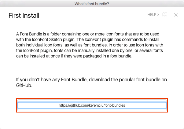 まずはプラグインをインストールし、「Plugins → Icon Font → What is a Font Bundle?」を選択しウィンドウを表示します。