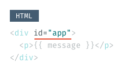 div要素のid属性は、Vue.jsを実行する要素を指定するために必要で、今回はappとしました。要素はdiv以外でも構いません。