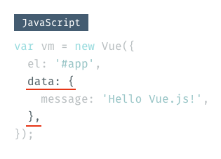 dataは、文字通りVue.js内で使うさまざまなデータをする場所です。
