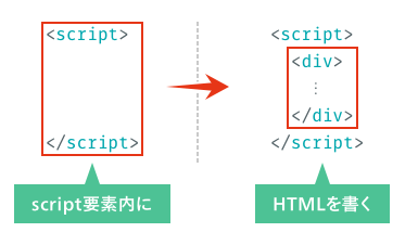 ここまでの解説では、単純にJavaScriptで設定した文字をテンプレートに入れ、ブラウザでレンダリングしただけにみえます。