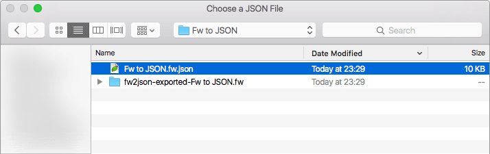 Fw to JSONで書き出したJSONを選択します。