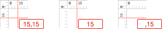 任意の座標にガイドラインを作成します。値は、X, Y で入力し、垂直方向だけ作成する場合は、X 座標のみ(e.g. 10)、水平方向だけ作成する場合は、カンマ + Y 座標(e.g. ,10)と入力します。
