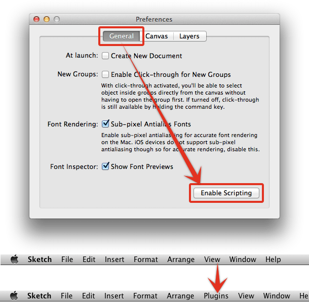 [Preferences]の[General]タブにある「Enable Scripting」をクリックして有効にすると、メニューに[Plugins]が表示されます。