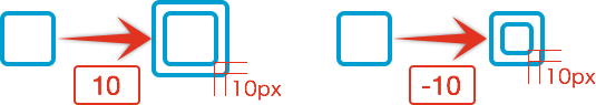 入力した値分、幅と高さをオフセットしたオブジェクトを複製します(角丸の大きさや線幅は変更されません)。マイナスの値も入力できますが、オフセットした結果、幅や高さが0以下になる場合、同じ大きさのオブジェクトが複製されます。