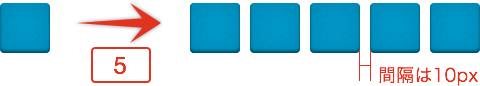 選択しているオブジェクトを、入力した値の数だけ水平方向に複製します。オブジェクト同士の間隔は10pxになるようです。