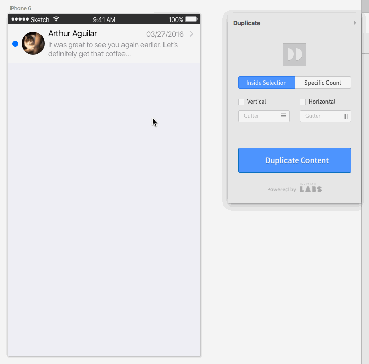 そして何より重要なのは、Duplicateを使って複製すると、内包するレイヤー内でTypeやPhotoを使ってダミーを挿入している場合、複製された文字や写真がランダムに置き換わるということです。今までだと複製後にContent Generatorなどで都度テキストを入れ替えていましたが、それが不要になります(この機能もSketch版のみ)。