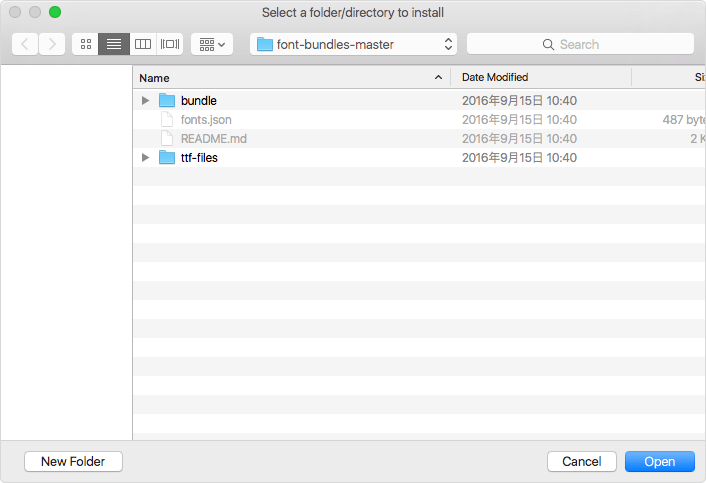 現在インストールしているフォント情報をJSONファイルとして書き出します。実行し書き出すフォルダを指定すると、fonts.jsonとbundleフォルダへフォント情報のJSONファイルが書き出されます。